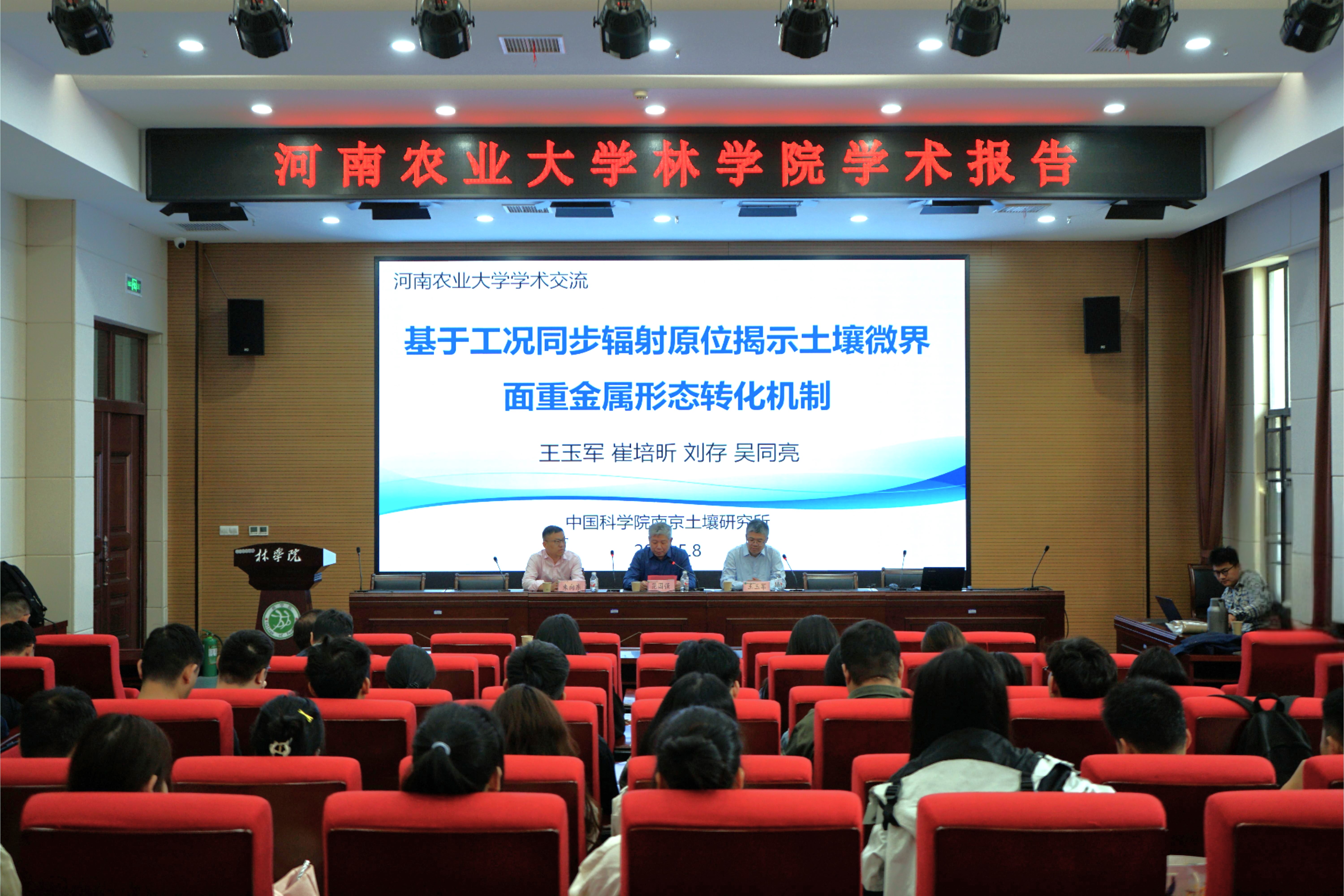 师生作题为《基于工况同步辐射原位揭示土壤微界面重金属形态转化机制》和《生物炭低维化与环境地学应用探索》的学术报告。学院相关专业教师及研究生参加报告会。报告会由院长范国强主持。