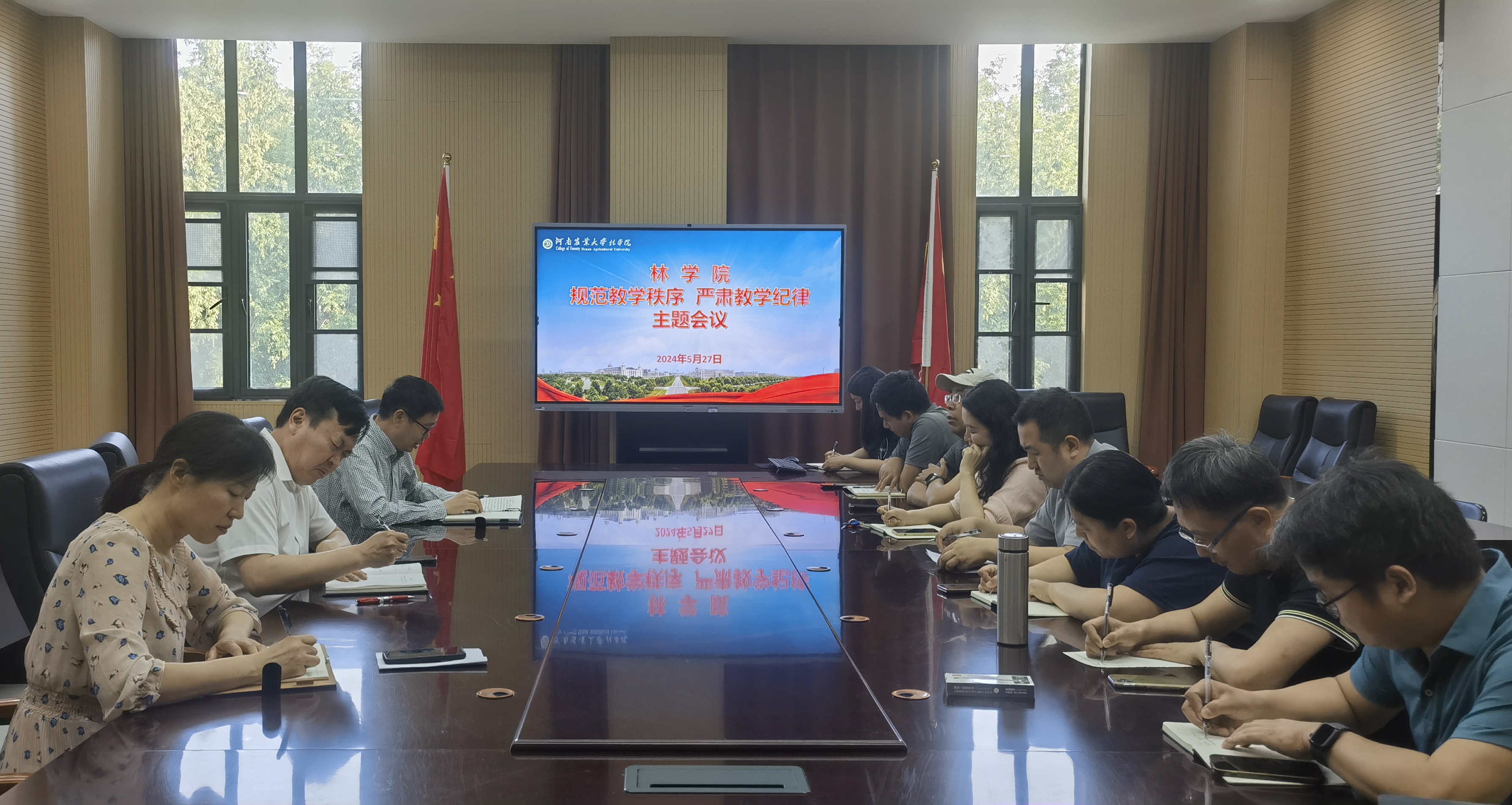 召开“规范教学秩序、严肃教学纪律”主题工作会议。院党委书记化青报、副院长彭万喜、副院长李喜梅出席,各系主任、教学副主任、教学秘书等负责教学人员参加会议。会议由彭万喜主持。