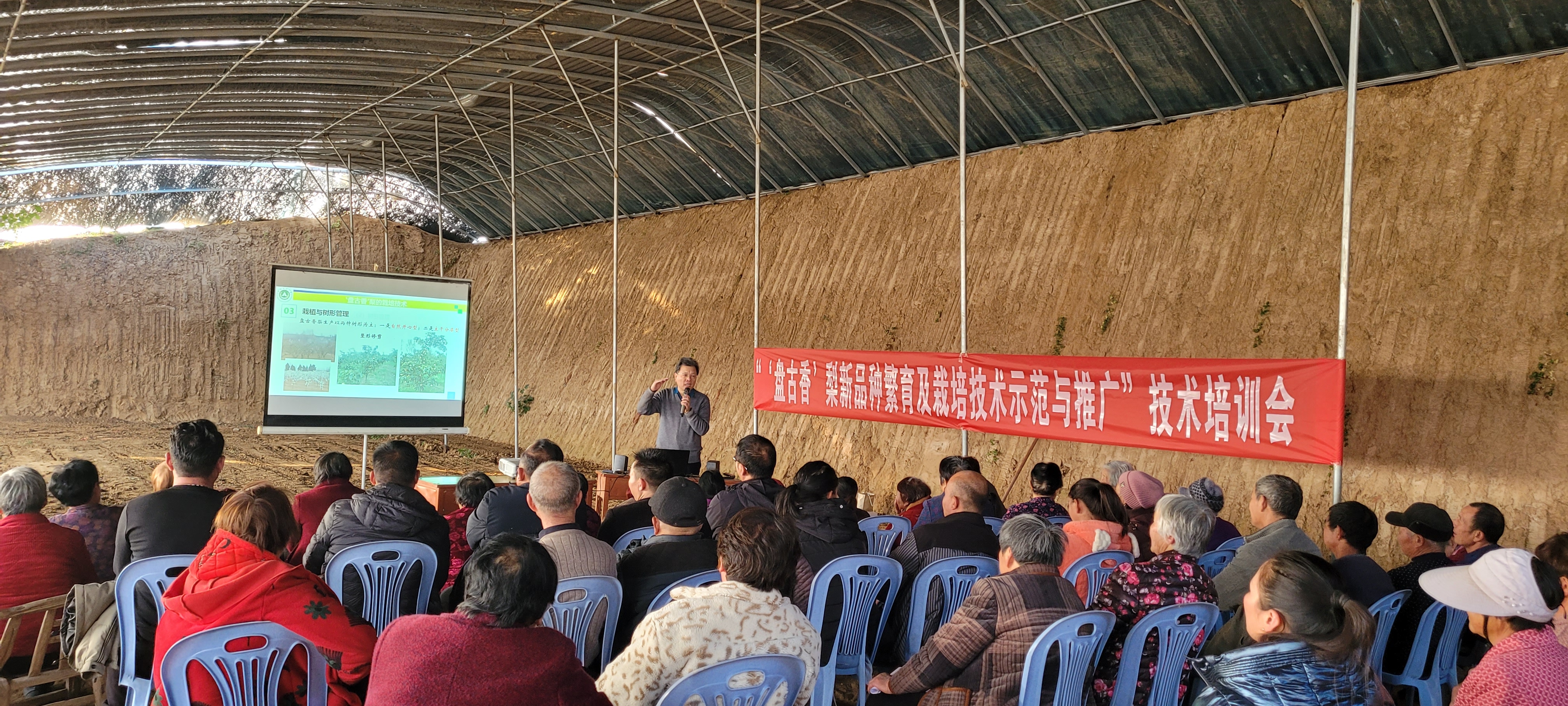 刘震详细讲解了“豫济”山桐子、“盘古香”栽培技术,王艳梅主讲了山桐子育苗技术,李志讲解了山桐子病虫害防治技术,蔡齐飞详细介绍了“盘古香”梨育苗技术的各个环节。各位老师以深入浅出的语言,结合实际案例进行了讲解诠释,受到了参培人员的一致好评。