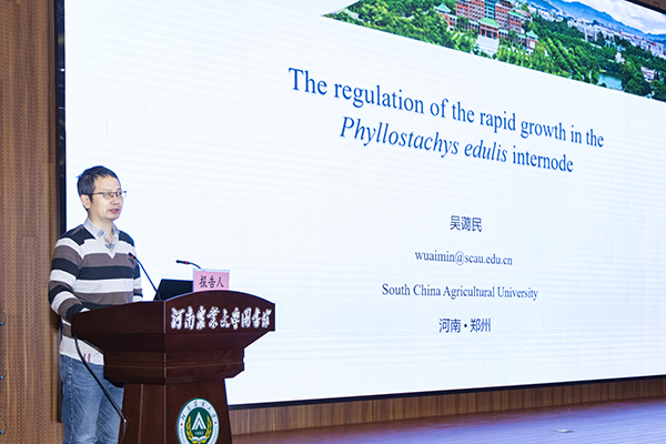 华南农业大学吴蔼民教授以“光周期调控毛竹快速生长”为题作特邀报告。他指出,随着年龄的增长,毛竹的木质素的变化频度的速度增加。microRNA调节植物生长细胞生长细胞分裂,对毛竹生长起到重要作用,同时植物节律、光周期也调控竹子生长,使其夜间生长快白天生长慢。