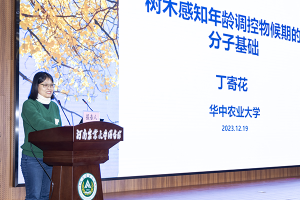 华中农业大学丁寄花教授以“树木感知年龄调控物候期的分子机制”为题作特邀报告。她指出,物候期作为树木的一种重要形状,对于植物研究、农业生产、生态保护等方面都具有重要的指导意义。选择有明显物候期特征的杨树作为研究对象,揭示了树木感知年龄与物候期之间的联系。
