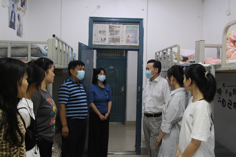 大家庭,亲切询问新生入学感受,与新生交流大学四年的规划,嘱托新生要切实落实学院疫情防控的要求,增强安全防范意识,合理规划大学生活学习,尽快适应大学生活。