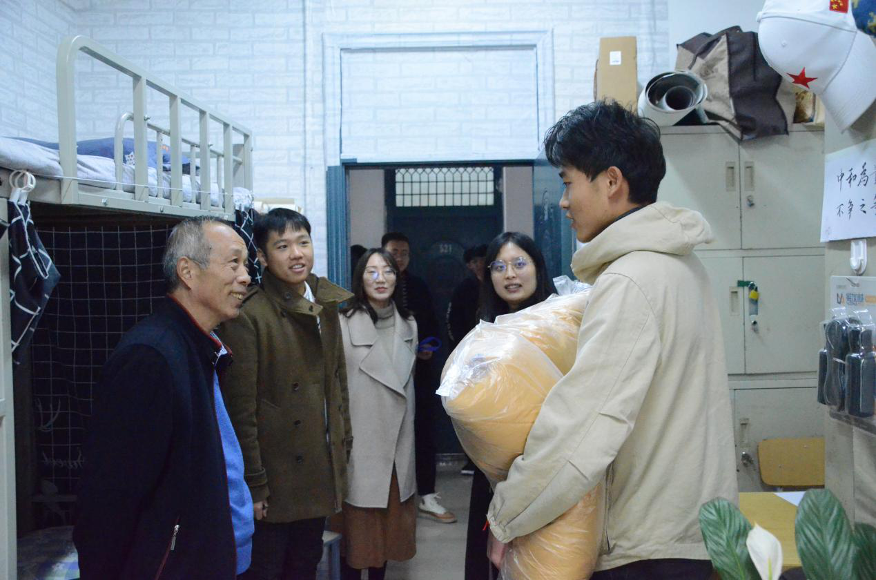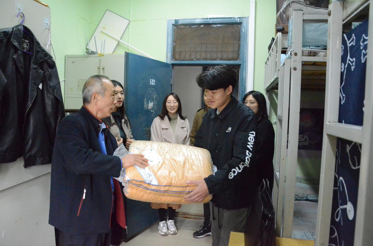 在送温暖活动中,老师们来到5号楼学生宿舍,为学生送上过冬棉被,让学生在这个冬季感受到来自学院的殷殷关切。各老师首先向学生宣讲党的十九届四中全会精神和省委书记王国生到我校与师生座谈时讲话精神,并衷心希望同学们能够真正领会十九届四中全会和王国生书记来我校讲话精神内涵,做社会主义合格建设者和可靠接班人。每到一间宿舍,性爱视频 领导老师与学生亲切交流,了解学生的学习和生活状况,勉励大家珍惜当下,不负青春,开拓进取,成长成才。对于来自省外的学生,学院领导更是关怀备至,嘱咐辅导员老师多关注他们的生活学习,提供必要的帮助。同学们纷纷表示会将温暖化为激励,将感动化作行动,刻苦学习专业知识,提升综合素质,用实际行动回报学院培养之恩。