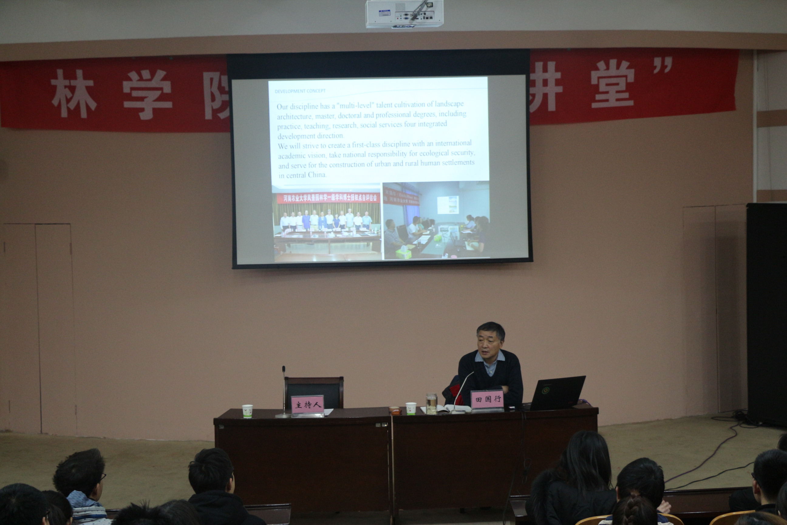 12月26日,园林系教授、博士生导师田国行走进性爱视频 “教授讲堂”,于校300人报告厅为相关专业学生做了专题报告。报告会由院团委老师田原主持。