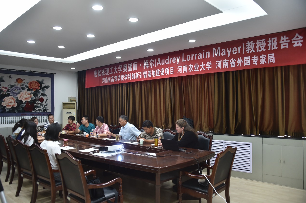 邀请,“城乡绿地资源调控与景观生态设计”学科创新引智基地国际学术大师、美国密歇根理工大学奥黛丽·梅尔(Audrey Lorraine Mayer)教授,莅临我校共商引智基地建设事宜,并进行学术交流合作研究。