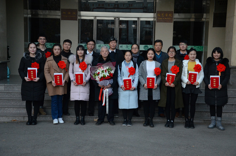 第九届“蒋建平奖学金”获奖代表2014级林学二班的冯雪瑾同学在发言中向蒋建平教授表示衷心的感谢和真挚的祝福,感谢他对学子深深的关爱,祝愿他身体康泰。她在发言中讲述了蒋建平教授将获得的“河南省科技功臣”奖金捐做奖学金的事迹,对蒋建平教授的无私关爱和殷切期待深表感动,接着她代表全体获奖者表示会继续深入学习科学知识,积极投入创新创业,将这份宝贵的精神财富当作鼓励,用实际行动回报母校,回报蒋建平教授的关爱。