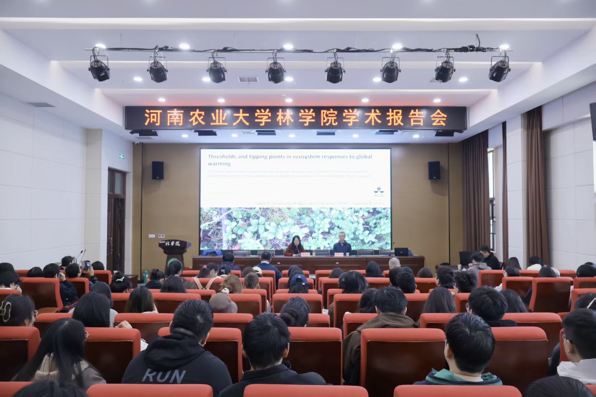 力行楼南-428报告厅作题为《生态系统对全球变暖响应的临界点与转折点》的学术报告。学院相关专业教师和研究生参加会议,会议由副院长张学芳主持。