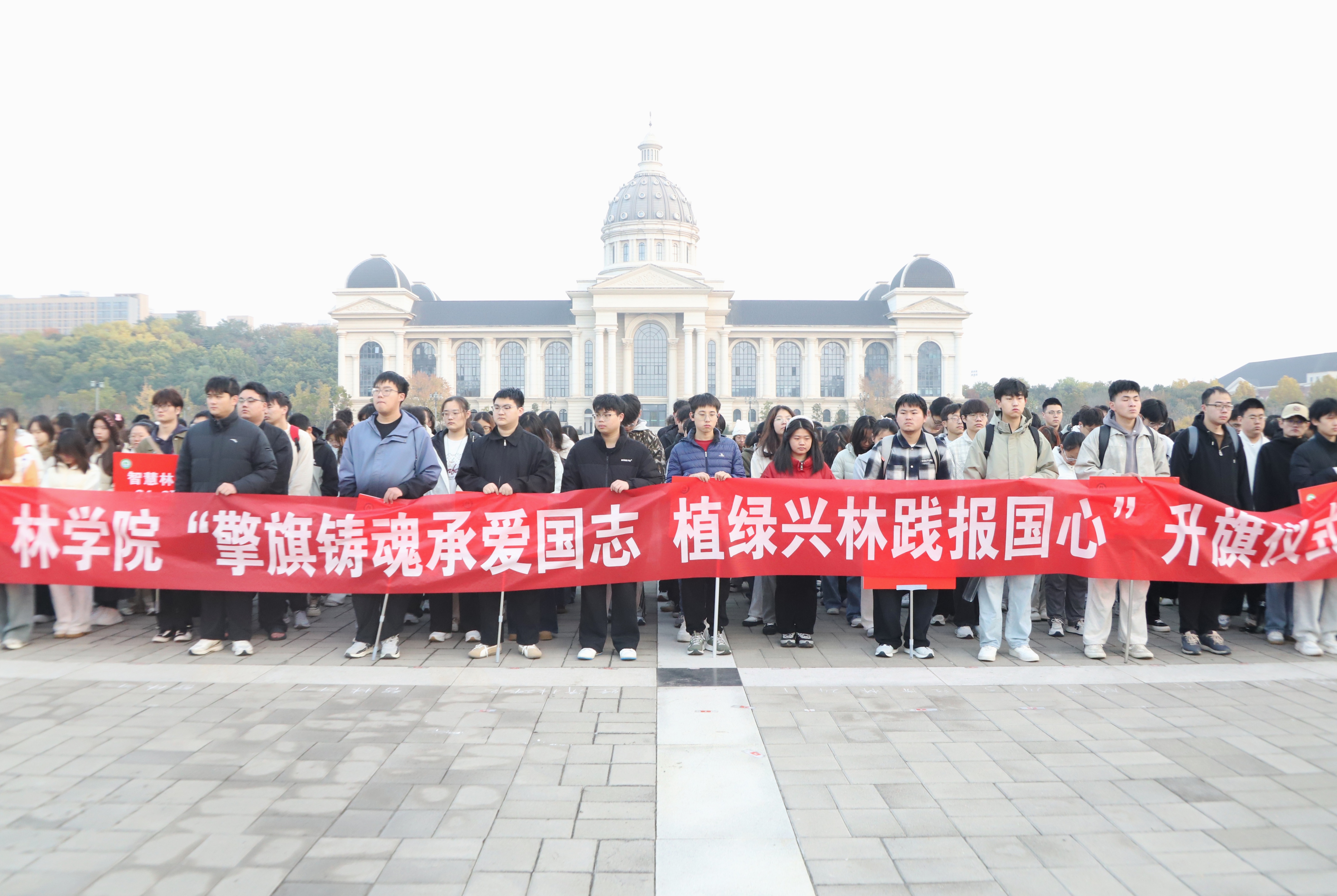 学子寄语,并提出三点期望:一要以国旗为志,将爱国情怀融入血脉,让个人理想融入国家生态文明建设的宏伟蓝图;二要以专业为基,用所学知识助力绿色发展,展现林学人“替河山装成锦绣”的使命担当;三要以团结为要,凝聚“校兴我荣、校强我责”的集体意识,在植绿护绿的实践中贡献青春力量。