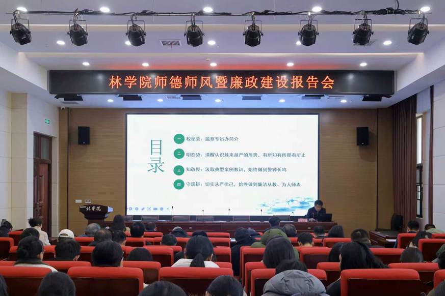 师德师风暨党风廉政建设报告会。本次报告会特邀学校纪委副书记王淮东担任嘉宾。院党委书记化青报、正处级组织员李培玉、院党委副书记王娟及全体教职工参加会议。会议由化青报主持。