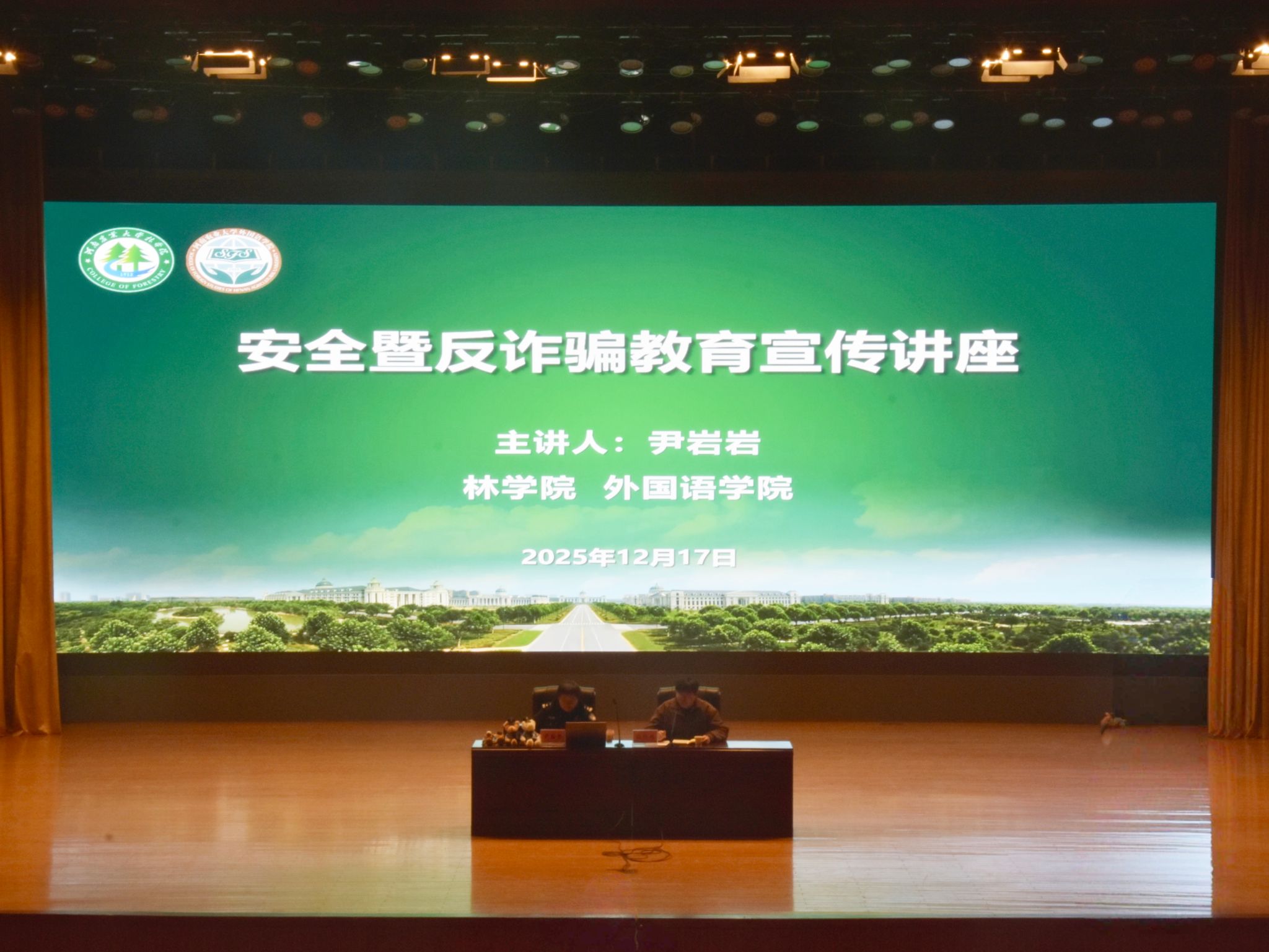 与外国语学院于文化路校区大礼堂联合开展安全暨反诈骗教育宣传讲座。本次活动特邀东风路派出所尹岩岩警官主讲,院团委老师施佳伟主持,两院2025级全体本科生参加。