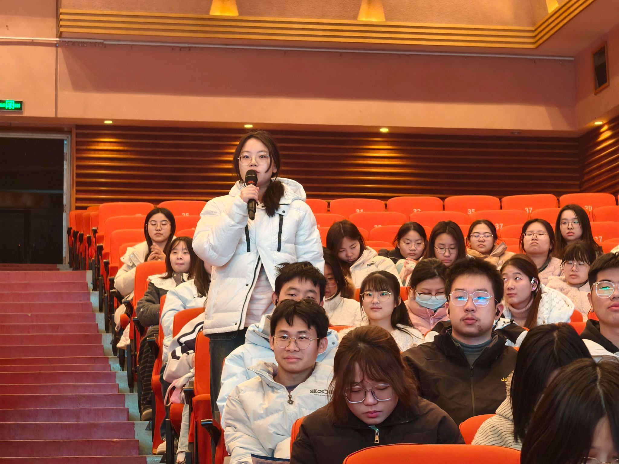 讲座伊始,尹岩岩向学生们分发反诈宣传页,随后结合校园真实案例,剖析网络交易、冒充官方等高发诈骗类型,拆解诈骗分子的套路手段,同时讲解校园防盗注意事项。讲座设置互动问答与案例分析环节,学生们踊跃参与作答,警官为作答出彩的同学送上警察小熊、笔记本等奖品,现场氛围热烈。