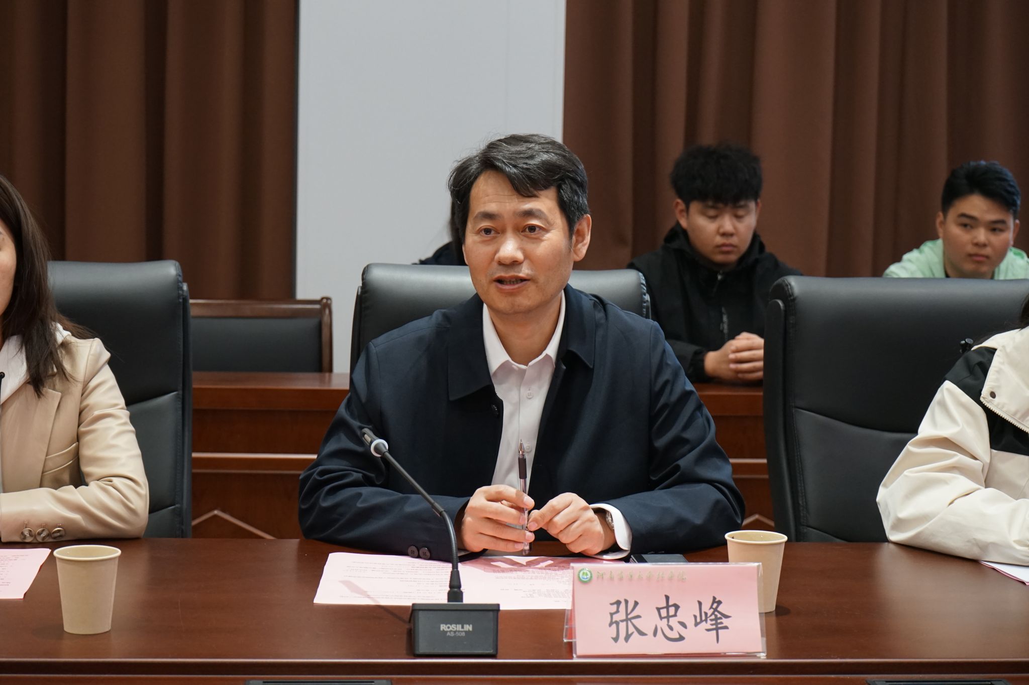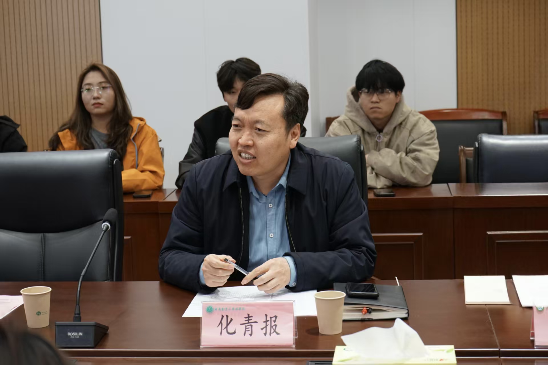 会议伊始,化青报致欢迎辞,对张忠峰院长一行表示热烈欢迎,并介绍了学院基本情况、近年来在人才培养、科研平台建设与社会服务等方面取得的成果,希望双方可以深入交流、深化合作、推动资源共享,加强双创比赛融合组队。