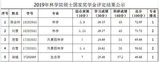 硕士研究生国家奖学金评定细则》的规定,本着 “公平、公正、公开”的原则,经本人申请、院研究生工作领导小组审核评议,院党政联席会研究决定,确定2019年硕士研究生国家奖学金获得者名单,现公示如下: