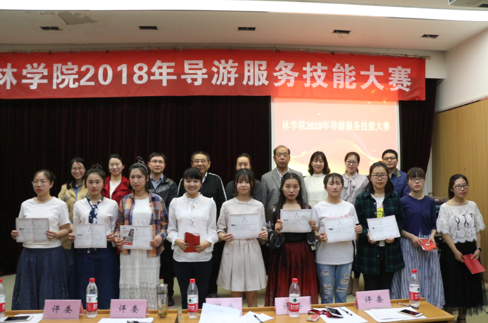 于2号楼四楼学术报告厅举办2018年导游服务技能大赛,副院长孔德政、林学系主任毕会涛、副主任何静、院团委副书记姜鑫、外国语学院老师豆涛、体育学院老师李彬彬、旅游管理专业老师孙刘伟、郭二艳、侯贺平出席了此次比赛并担任评委,性爱视频